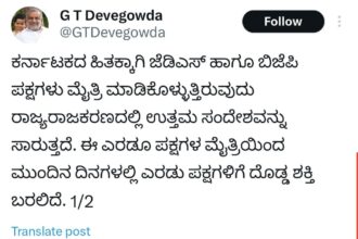 ಮೈತ್ರಿ ಎರಡು ಪಕ್ಷಗಳಿಗೂ ಶಕ್ತಿ ಕೊಡತ್ತೆ – ಜಿಟಿ ದೇವೇಗೌಡ