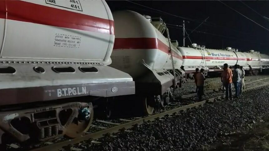 ಗೂಡ್ಸ್ ರೈಲಿನಿಂದ ಅನ್ಲೋಡ್ ಮಾಡಲು ಇರಿಸಿದ್ದಾಗ ಘಟನೆ ನಡೆದಿದೆ ಎಂದು ಪಶ್ಚಿಮ ಸೆಂಟ್ರಲ್ ರೈಲ್ವೆ ಸಿಪಿಆರ್ಒ ಮಾಹಿತಿ ನೀಡಿದೆ.ಕಳೆದ ರಾತ್ರಿ ಗೂಡ್ಸ್ ರೈಲಿನ ಎಲ್ಪಿಜಿ ರೇಕ್ನ ಎರಡು ವ್ಯಾಗನ್ಗಳನ್ನು ಇಳಿಸಲು ಮುಂದಾದಾಗ ಹಳಿತಪ್ಪಿದೆ. ಸದ್ಯ ರೈಲುಗಳ ಯಾವುದೇ ಮುಖ್ಯ ಸಂಚಾರಕ್ಕೆ ತೊಂದರೆಯಾಗಿಲ್ಲ. ಮುಖ್ಯ ಮಾರ್ಗದಲ್ಲಿ ರೈಲು ಸಂಚಾರ ಸಾಮಾನ್ಯವಾಗಿದೆ. ಬೆಳಗ್ಗೆ ಸೈಡಿಂಗ್ ಅಧಿಕಾರಿಗಳ ಸಮ್ಮುಖದಲ್ಲಿ ಹಳಿತಪ್ಪಿದ ರೈಲನ್ನು ಮರುಸ್ಥಾಪಿಸಲಾಗಿದೆ ಎಂದು ರೈಲ್ವೆ ತಿಳಿಸಿದೆ.