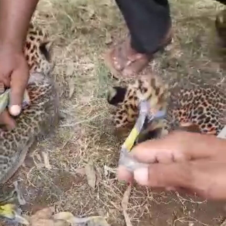 ಕಬ್ಬು ಕಟಾವು ವೇಳೆ ಕಾಣಿಸಿಕೊಂಡಿರುವ 2 ಚಿರತೆ ಮರಿಗಳು.ಗುಡ್ಡದಕೊಪ್ಪಲು ಗ್ರಾಮದ ದೊರೆಸ್ವಾಮಿ ಎಂಬುವರ ಕಬ್ಬಿನ ಗದ್ದೆಯಲ್ಲಿ ಪ್ರತ್ಯಕ್ಷವಾಗಿದೆ.