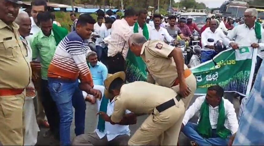 ಚಾಮರಾಜನಗರ : ಕಾವೇರಿ ನದಿ ನೀರು ಹಂಚಿಕೆಯಲ್ಲಿ ಸುಪ್ರಿಂ ಕೋರ್ಟ್ ನೀಡಿರುವ ನಿರ್ದೇಶನವನ್ನು ಖಂಡಿಸಿ ಕರ್ನಾಟಕ ರಾಜ್ಯ ಕಬ್ಬು ಬೆಳೆಗಾರರ ಸಂಘದವರು ಕರ್ನಾಟಕ ತಮಿಳುನಾಡು ಹೆದ್ದಾರಿ ಬಂದ್ ಮಾಡಲು ಮುಂದಾಗಿದ್ದು, ಸಂಚಾರಕ್ಕೆ ತೊಂದರೆಯಾದ ಹಿನ್ನಲೆಯಲ್ಲಿ ಪ್ರತಿಭಟನಾಕಾರರನ್ನು ಪೊಲೀಸರು ಬಂಧಿಸಿದ ಘಟನೆ ಚಾಮರಾಜನಗರದಲ್ಲಿ ನಡೆದಿದೆ.