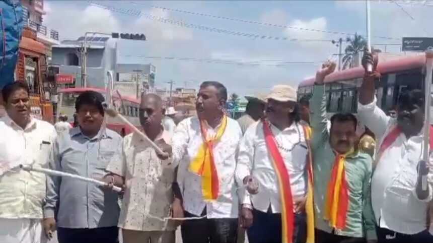 ಚಾಮರಾಜನಗರದಲ್ಲಿ ಕನ್ನಡ ಪರ ಸಂಘಟನೆಗಳ ಒಕ್ಕೂಟವು ಭಾನುವಾರವೂ ಸಹ ಹೋರಾಟ ಮುಂದುವರೆಸಿದ್ದು, ತಮಿಳುನಾಡಿಗೆ ಬಾರುಕೋಲಿನೇಟು ಕೊಡುವ ಮೂಲಕ ವಿನೂತನ ಚಳವಳಿ ನಡೆಸಿತು.