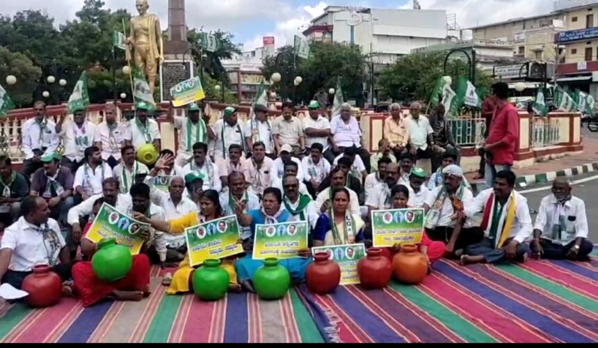 ತಮಿಳುನಾಡಿಗೆ ನೀರು ಹರಿಸುತ್ತಿರುವ ರಾಜ್ಯ ಸರ್ಕಾರದ ವಿರುದ್ಧ ಘೋಷಣೆಗಳನ್ನು ಕೂಗಿ ಆಕ್ರೋಶ.