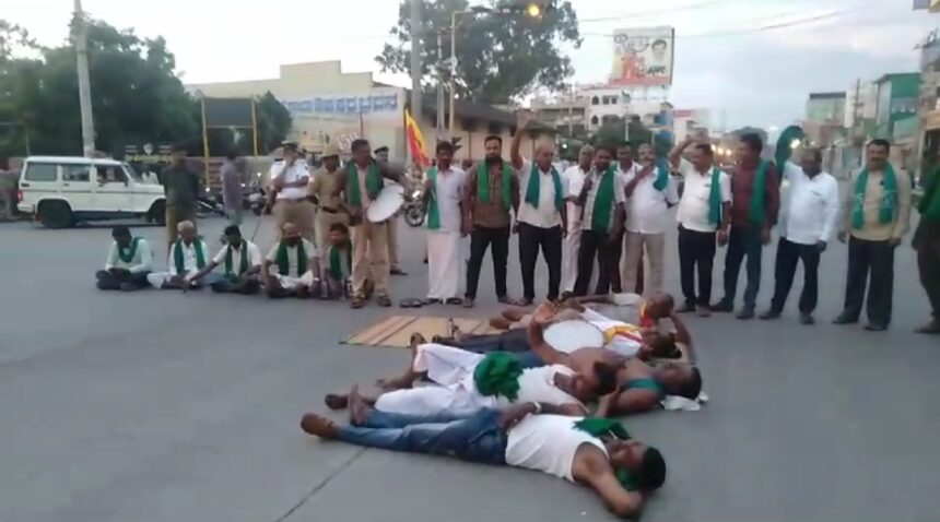 ಶ್ರೀ ಭುವನೇಶ್ವರಿ ವೃತ್ತದ ಮೂಲಕ ತಮಿಳುನಾಡಿಗೆ ಸಾಗುವ ರಾಷ್ಟ್ರೀಯ ಹೆದ್ದಾರಿಯಲ್ಲಿ ಹೋರಾಟಗಾರರು ಅರೆ ಬೆತ್ತಲೆಯಾಗಿ ಉರುಳು ಸೇವೆ ಮಾಡಿದರು.