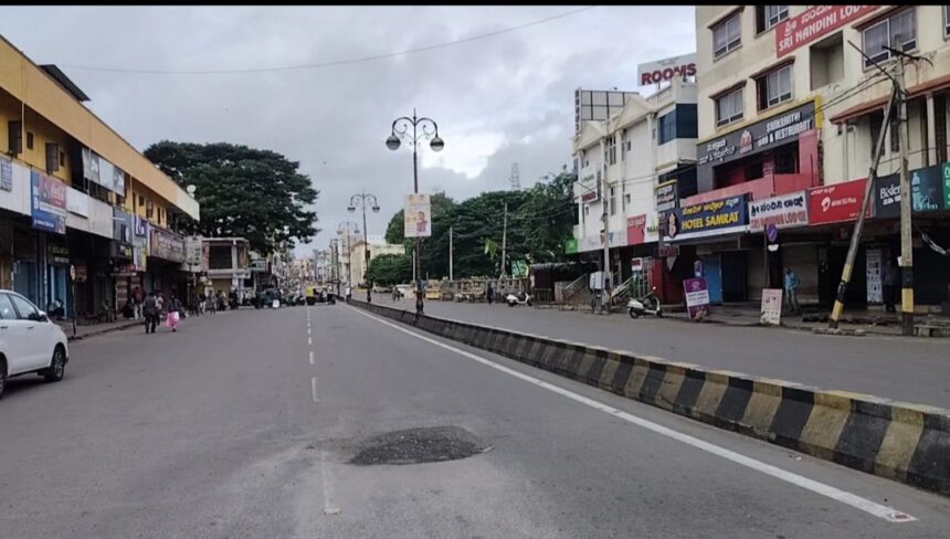 ನಗರ ಹಾಗೂ ಜಿಲ್ಲೆಯಾದ್ಯಂತ ಎಲ್ಲಾ ಅಂಗಡಿ- ಮುಂಗಟ್ಟುಗಳನ್ನು ಬಂದ್ ಮಾಡಲಾಗಿದೆ.