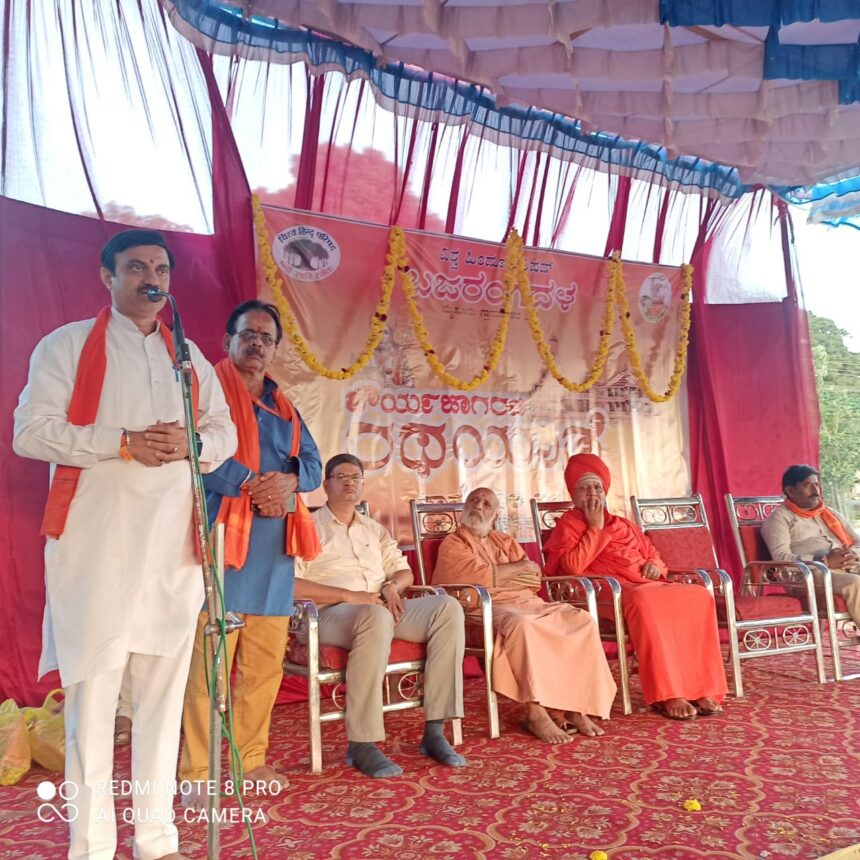 ಮಂಡ್ಯ ಬಜರಂಗದಳದ ಜಿಲ್ಲಾಧ್ಯಕ್ಷ ಬಾಲು ಮಾತನಾಡಿ ಹಿಂದೂ ಸಮಾಜದ ಸೌಮ್ಯ ಗಣಗಳು ಇತರರಿಗೆ ವರವಾಗಿದೆ. ಧರ್ಮ ರಕ್ಷಣೆ ಸಮರಕ್ಕೂ ಸಿದ್ಧರಾಗುವ ಮನೋಭಾವನ್ನು ಹಿಂದೂ ಸಮಾಜ ಮೂಡಿಸಿಕೊಳ್ಳುವ ಅನಿವಾರ್ಯ ಪರಿಸ್ಥಿತಿ ಇಂದು ನಿರ್ಮಾಣವಾಗಿದೆ. ಸಂಘಟಿತ ಹೋರಾಟದಿಂದ ಮಾತ್ರ ಧರ್ಮ ರಕ್ಷಣೆ ಸಾಧ್ಯವೆಂದು ತಿಳಿಸಿದರು.
