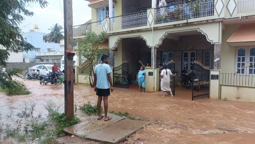 ಮೈಸೂರು : ಹುಣಸೂರು ತಾಲ್ಲೂಕಿನಲ್ಲಿ ಮಳೆಯ ಅಬ್ಬರ ಹಿನ್ನಲೆಯಲ್ಲಿ ಮಂಜುನಾಥ ಬಡಾವಣೆ ಸಾಕೇತ ಬಡಾವಣೆ ಬೋಮ್ಮೇಗೌಡ ಬಡಾವಣೆಯಲ್ಲಿ ಮಳೆ ನೀರು ನಿಂತಿದೆ.