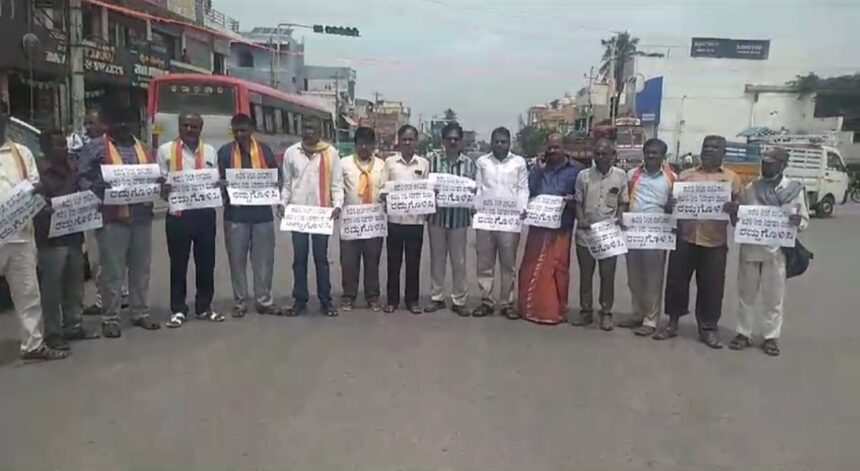 ಶ್ರೀ ಭುವನೇಶ್ವರಿ ವೃತ್ತದಲ್ಲಿ ತಮಿಳುನಾಡಿಗೆ ಹಾದು ಹೋಗುವ ರಾಷ್ಟ್ರೀಯ ಹೆದ್ದಾರಿಯನ್ನು ತಡೆದು ವಾಹನ ಸಂಚಾರಕ್ಕೆ ಅಡ್ಡಿ ಪಡಿಸಲಾಯಿತು.