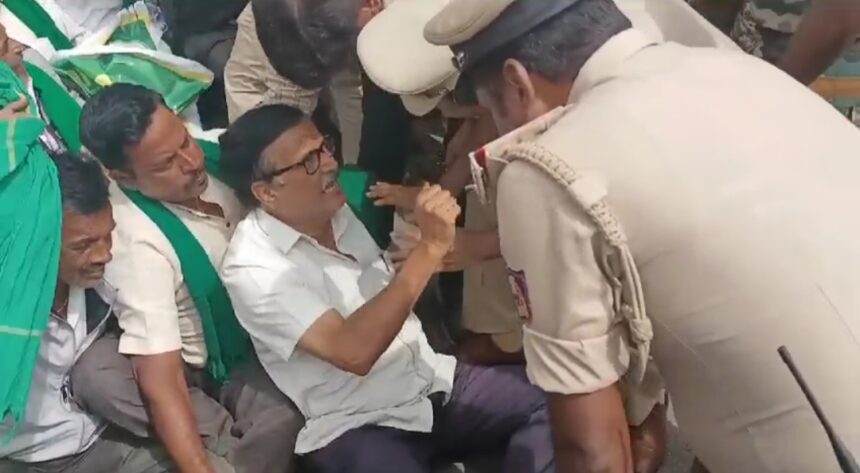 ಪೋಲಿಸರ ನಡೆಗೆ ರೈತರ ಆಕ್ರೋಶ ಹೊರ ಹಾಕಿದರು.ನಂತರ ರೈತರನ್ನು ಏಕಾಏಕಿ ಬಂಧಿಸಿದ ಪೋಲಿಸರು.