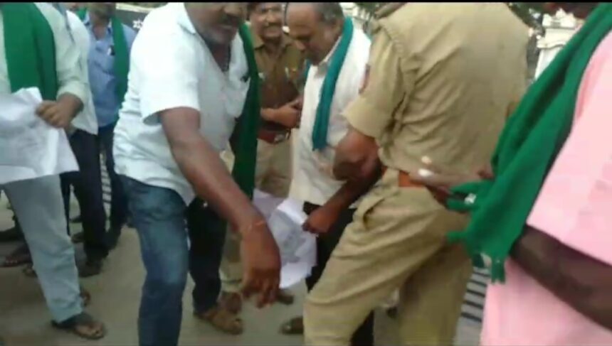 ಪೊಲೀಸರು ಮತ್ತು ಪ್ರತಿಭಟನಾ ರೈತರ ನಡುವೆ ಮಾತಿನ ಚಕಮಕಿ ನಡೆದವು. ಕೊನೆಗೆ ರೈತರು ರೈತ ವಿರೋಧಿ ಸಚಿವ ಶಿವಾನಂದ್ ಪಾಟೀಲ್ ಭಾವಚಿತ್ರವನ್ನು ಹರಿದು ಹಾಕುವ ಮೂಲಕ ಆಕ್ರೋಶ ವ್ಯಕ್ತಪಡಿಸಿದರು. ನಂತರ ಪ್ರತಿಭಟನಾಕಾರರನ್ನು ಪೊಲೀಸರು ಬಂಧಿಸಿ ಬಿಡುಗಡೆ ಮಾಡಿದರು.
