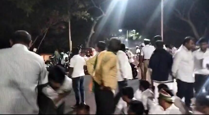 ರಸ್ತೆ ತಡೆದು ಪ್ರತಿಭಟನೆಗೆ ಮುಂದಾದ ಪ್ರತಿಭಟನಾ ಕಾರರು.