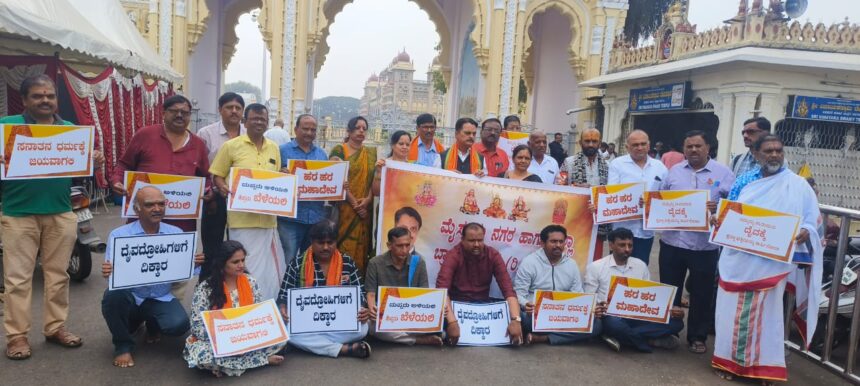 ಮೈಸೂರು : ನಂಜನಗೂಡು ಶ್ರೀಕಂಠೇಶ್ವರ ಸ್ವಾಮಿ ದೇವರಿಗೆ ಅಪಮಾನ ಖಂಡಿಸಿ ಪ್ರತಿಭಟನೆ