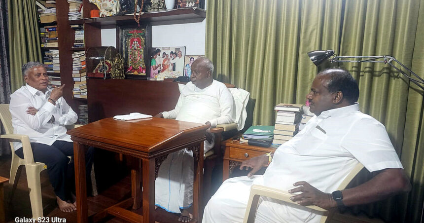 ಮಾಜಿ ಸಚಿವ ಸೋಮಣ್ಣ ಸಿಟಿ ರವಿ ದೇವೇಗೌಡರು ಹಾಗೂ ಕುಮಾರಸ್ವಾಮಿಯನ್ನು ಭೇಟಿಯಾಗಿ ಚರ್ಚೆ ನಡೆಸಿದ್ದಾರೆ. ಸೋಲಿನ ಹತಾಶೆಯಿಂದ ಬಿಜೆಪಿ ನಾಯಕರ ವಿರುದ್ಧ ಅಸಮಾಧಾನ ಹೊರಹಾಕುತ್ತಲೇ ಬಂದಿರುವ ಸೋಮಣ್ಣ ದೇವೇಗೌಡರ ಮೂಲಕ ಬಿಜೆಪಿ ಹೈಕಮಾಂಡ್ ಬಳಿ ಟಿಕೆಟ್ ಗಿಟ್ಟಿಸಿಕೊಳ್ಳುವ ಕಸರತ್ತು ನಡೆಸುತ್ತಿದ್ದಾರೆ.
