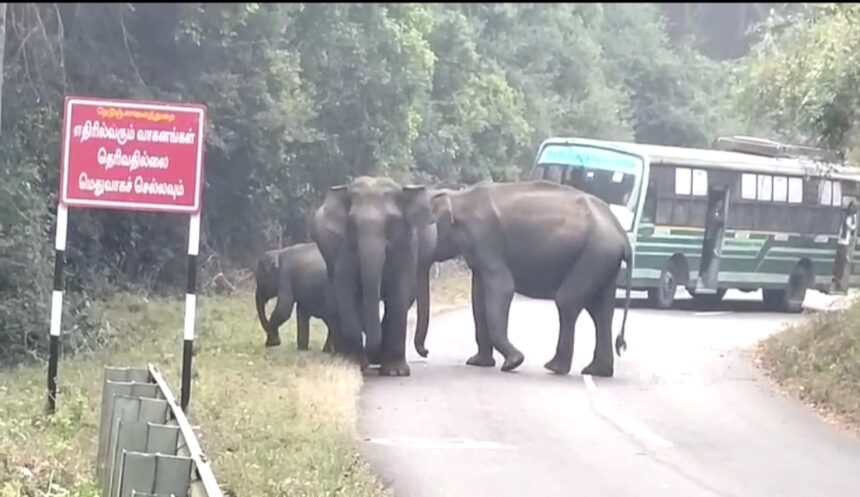 ತಮಿಳುನಾಡು ಸತ್ಯಮಂಗಲಂ ಹುಲಿ ಸಂರಕ್ಷಿತ ಪ್ರದೇಶಕ್ಕೆ ವ್ಯಾಪ್ತಿಯ ಹಾಸನೂರು ಬಳಿಯ ಮಾವಳ್ಳಂ ವಿಭಾಗದ ರಸ್ತೆಯಲ್ಲಿ ತಮಿಳುನಾಡಿನಿಂದ ಬಂದ ಸರ್ಕಾರಿ ಬಸ್ ನ್ನು ಆನೆಯ ಹಿಂಡೊಂದು ಅಡ್ಡಗಟ್ಟಿದ ಪರಿಣಾಂ ಕೆಲಕಾಲ ಬಸ್ ಹಾಗೂ ಇನ್ನಿತರ ವಾಹನಗಳ ಸಂಚಾರಕ್ಕೆ ಅಡ್ಡಿಯಾಗಿತ್ತು.