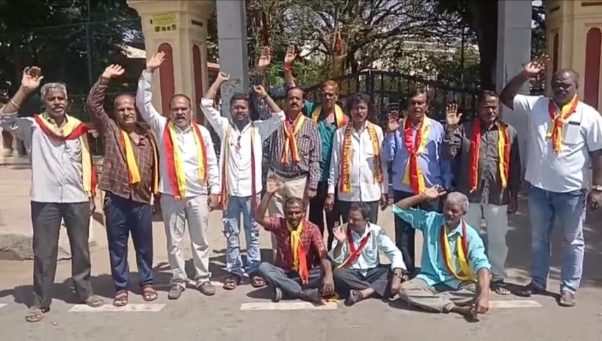 ಕನ್ನಡ ನಾಮಪಲಕಗಳ ಸುಗ್ರೀವಾಜ್ಞೆಯನ್ನು ವಿಧಾನಮಂಡಲ ಕಲಾಪದಲ್ಲಿ ಬಗೆಹರಿಸಿಕೊಳ್ಳಿ ಎಂದು ವಿಳಂಬ ಮಾಡಿದ ರಾಜ್ಯಪಾಲರ ವಿರುದ್ಧ ಪ್ರತಿಭಟನೆ ನಡೆಸಿದ್ದಾರೆ.